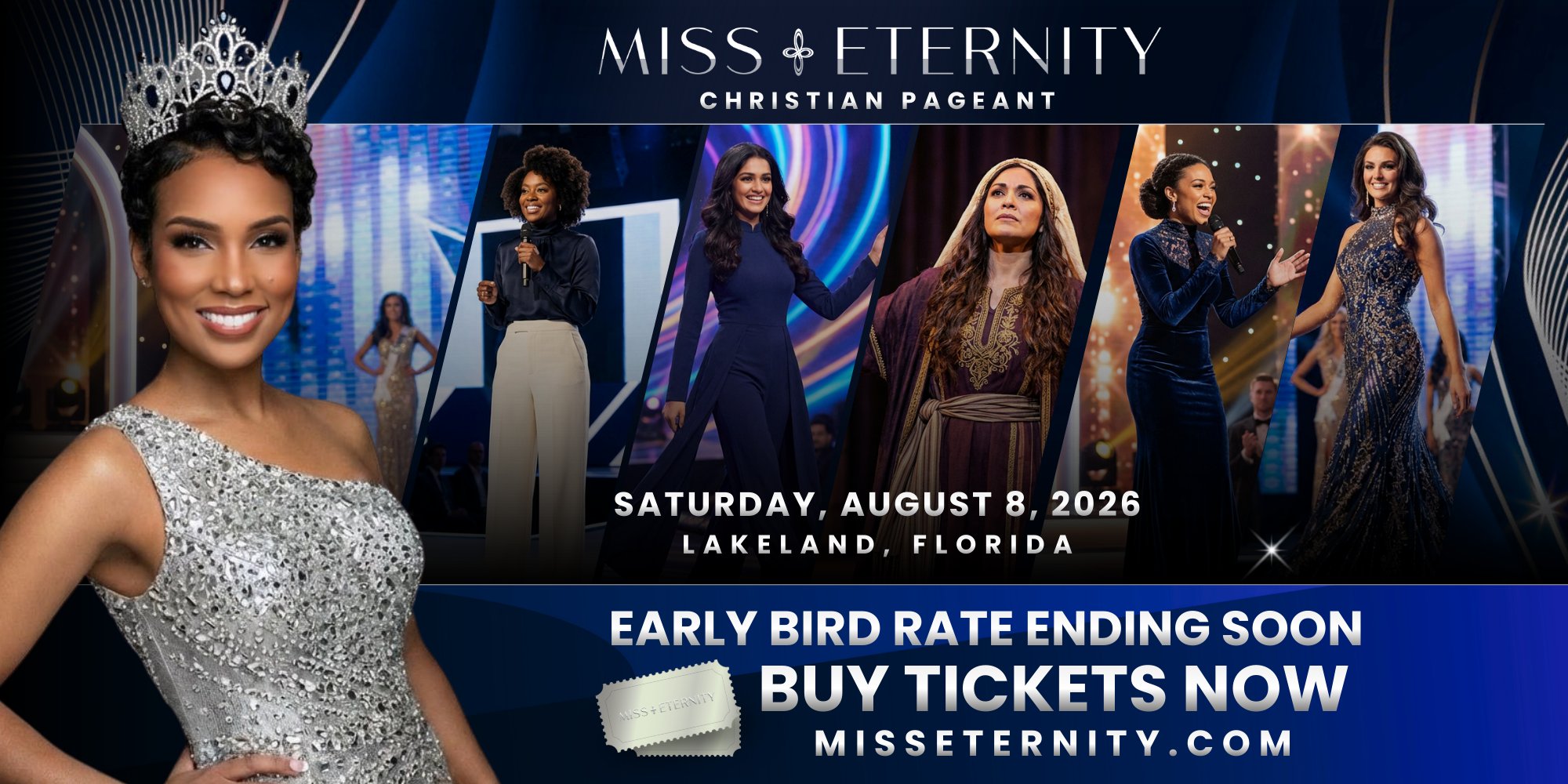 Set apart from the world, Miss Eternity offers audiences and participants a Christ-centered pageant honoring character, leadership, and spiritual depth rather than traditional swimsuit or fitness competitions. Taking place on August 8, 2026, this showcase celebrates beauty that flows from a surrendered life, recognizing women across core pillars of Faith, Legacy, and Leadership with prestigious titles like Miss Congeniality, Church’s Choice, and Radiant Reflections.